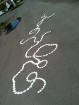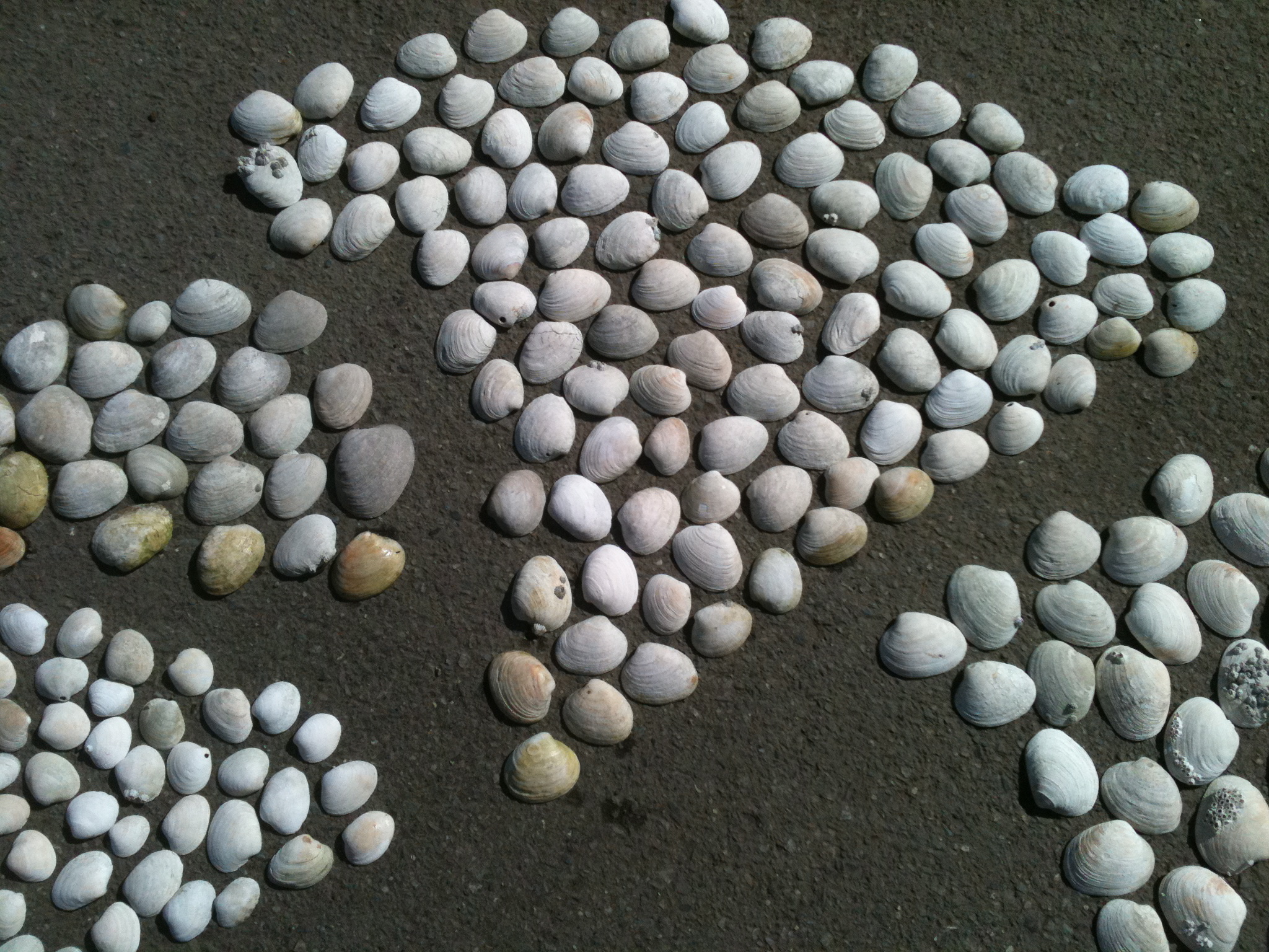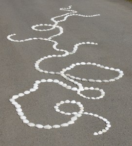 When I think about shells and the sea, farms and alleys don’t generally spring to mind – but today I drew with some shells in the alley behind my house and I thought about the farm. I thought about how the shells are like the rocks I am collecting from the farm. I thought about “place” and “placement” and collecting and carrying places inside and outside ourselves.